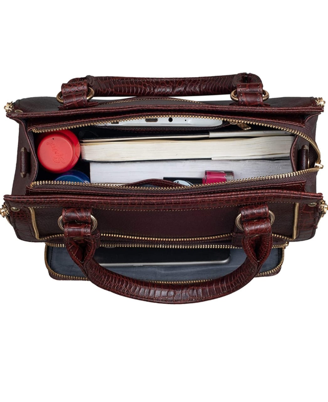 * CRAFTMENSHIP, METAL FITTING AND REINFORCEMENT MATERIAL: Pure Leather Detachable Shoulder Handle Fashion Hand Bags Get More Beautiful On Ageing. These Are Not Pu Which Will Contain Shine On Its Surface. Start Your Journey Now this Bag As A Fashion Hand Bag, Detachable Shoulder Bag . Suitable For Your Office, Meeting, shopping And Business For Everyday Use. It Also Makes For A Great Present , Fashion Hand bag comes with an adjustable, Detachable shoulder strap to carry the bag conveniently. Golden zipper and high quality fitments used are resistant to rust, corrosion & tarnishing , It Is Also Most Important To Use Good Quality Metal Fittings And Reinforcement Materials are used that distinguish ERGO ROYAL office bags from bags of any other brand.